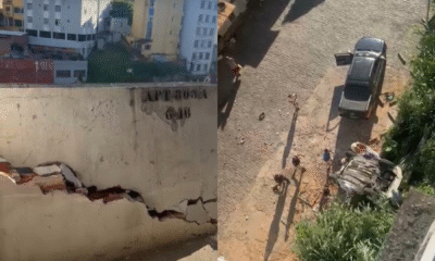 Um carro despencou do estacionamento de um prédio no bairro do Barbalho, em Salvador, na tarde de domingo (15), e caiu na área próxima à Feira...